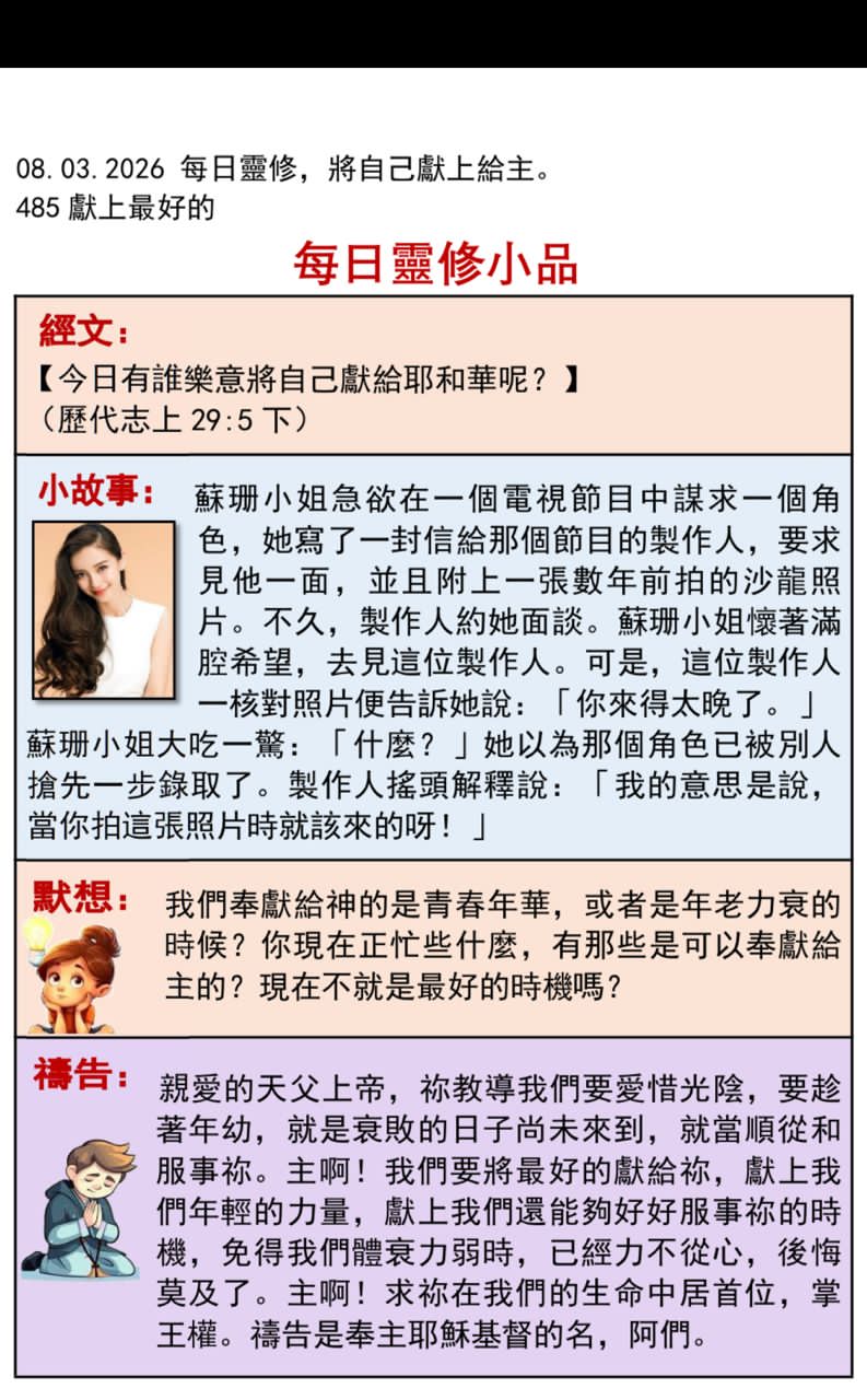 08.03.2026 主日平安🌻 獻上最好的時機 不要錯過🙌🏻🙏🏻💪🏻🙏🏻