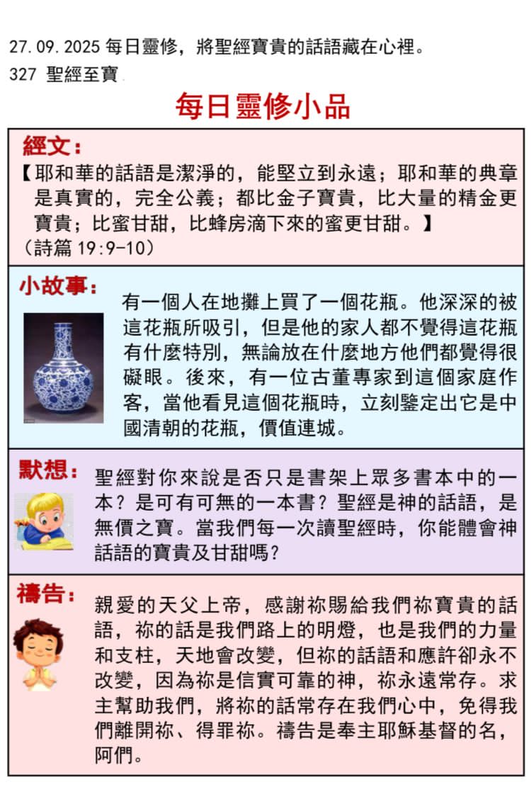 27.09.2025 🌟💪🏻享用 無價之寶 🙌🏻🙏🏻👍🏻路上光🌟